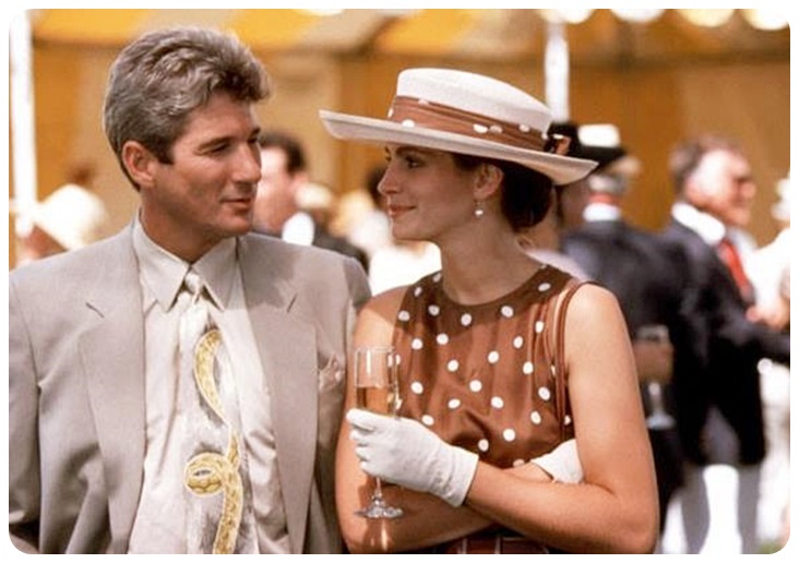 매력적인 독신남 에드워드(Edward Lewis: 리차드 기어)는 재정이 어려운 회사를 인수, 분해해서 다시 파는 사업가입니다. 진행 중인 모스 기업 인수 구상 차 헐리우드에 사는 변호사 필립(Philip Stuckey: 제이슨 알렉산더)의 파티에 참석한 그는 필립의 차를 빌려 타고 투숙 호텔로 가던 중, 지리를 몰라 당황하다 손님을 기다리던 콜걸 비비안(Vivian Ward: 줄리아 로버츠)의 도움을 받습니다. 스스럼없는 길거리식의 순진무구한 행동을 보이는 비비안에게 신선함을 느낀 에드워드는 그녀와 하룻밤을 같이 지내게 됩니다.